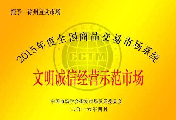 日前,第十七屆中國(guó)商品交易市場(chǎng)發(fā)展論壇在北京舉行。會(huì)上,公司被中國(guó)市場(chǎng)學(xué)會(huì)批發(fā)市場(chǎng)發(fā)展委員會(huì)授予2015年度全國(guó)商品交易市場(chǎng)系統(tǒng)“文明誠(chéng)信經(jīng)營(yíng)示范市場(chǎng)”稱號(hào)。公司黨委書(shū)記、董事長(zhǎng)、總經(jīng)理李旭昇獲全國(guó)商品交易市場(chǎng)發(fā)展功勛人物稱號(hào)。